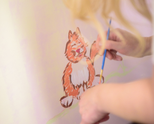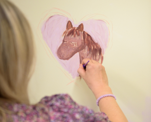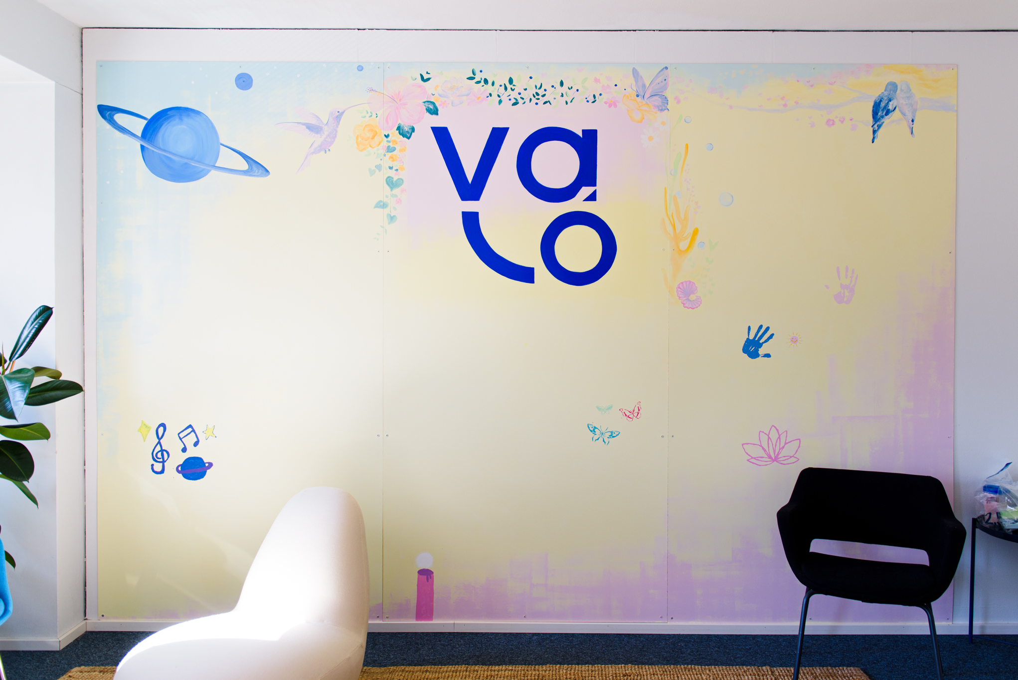 Valólla olemme toteuttaneet taideseinän yhteistyössä taiteilija Sonja Reen kanssa. Tämä seinä tulee toimimaan Valón vieraskirjana, jossa asiakkaamme saavat jättää oman kädenjälkensä.